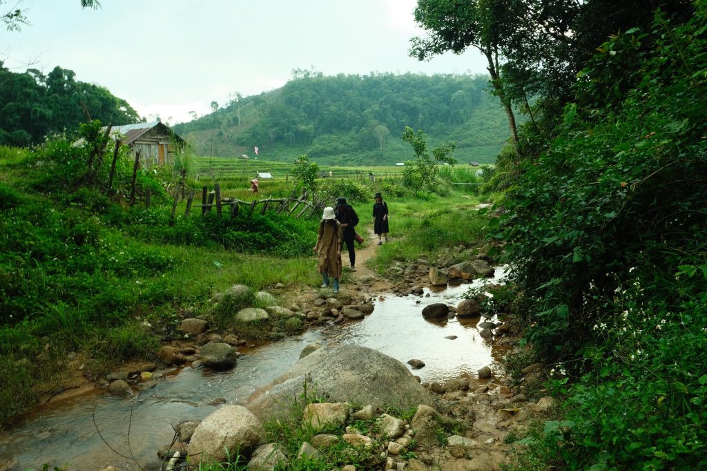Mới 5 giờ sáng, chúng tôi đã lặn lội đi vào rừng, băng qua những cánh đồng, qua con suối, qua cây dẻ gai cổ thụ, qua luôn cây thông to thật to… đi sâu vào rừng.